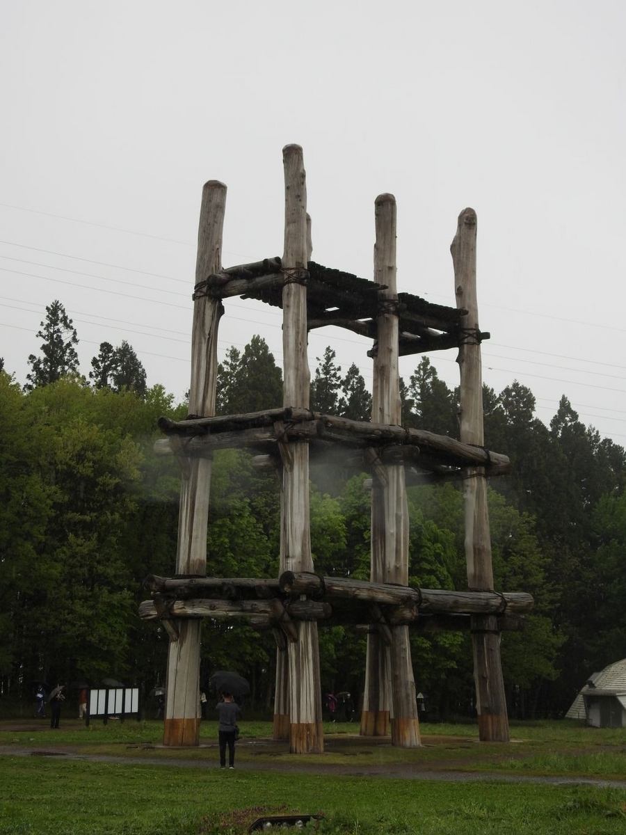 大型の建物。NHK『四大文明』でメソポタミア地方の住民が昔ながらの葦葺きの大型集会所で村の運営を話し合うシーンがあります。それと似ているので、三内丸山でも住民自治が行われていたのかもしれません。