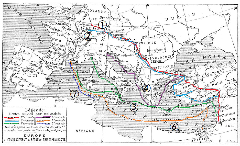 この戦いでは英仏王は海上からシリア入りをしています。地中海の軍事・通商上の制海権はイタリア諸都市に移りつつありました。またイェルサレムがムスリム側に渡ったためアッコン(アッコ)がイェルサレム王国の臨時首都になりました。